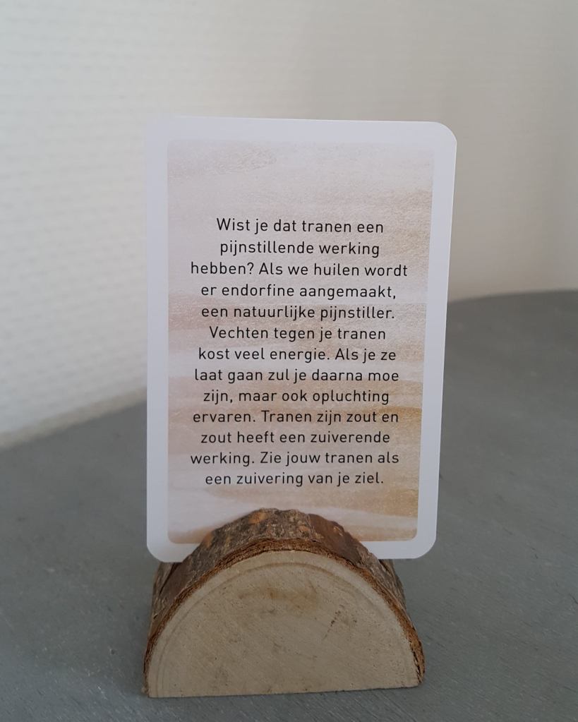 Ik had uitgelegd waarom het belangrijk is om te kunnen huilen. Om daar in elk geval ruimte voor te voelen. En ik vertelde dat al onze emoties er bij God mogen zijn en ertoe doen. Ze laten zien dat we op allerlei manieren verbonden waren met degene die er niet meer is.
