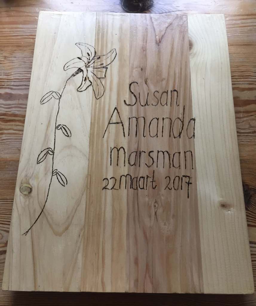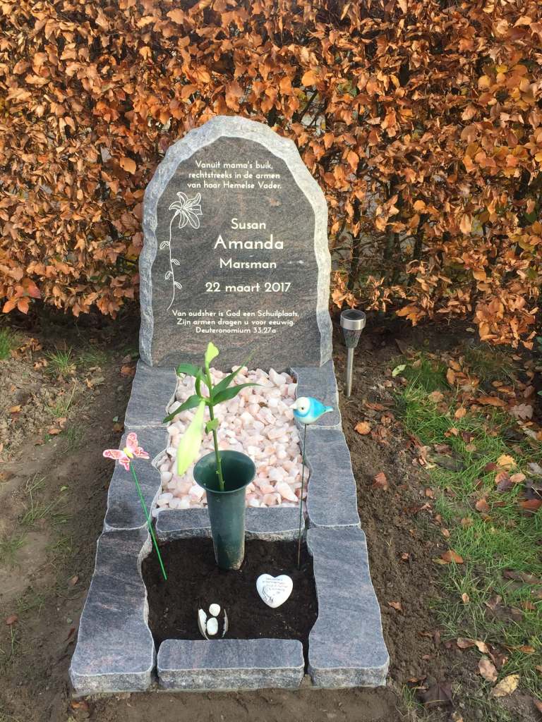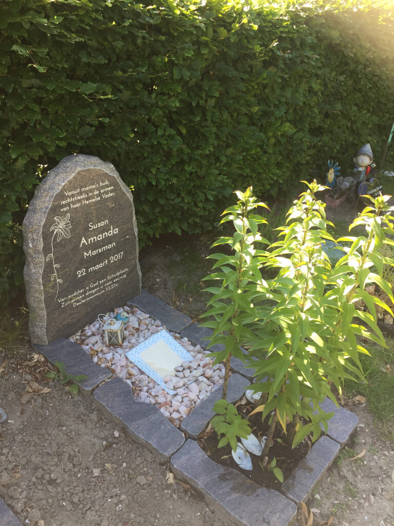 Amanda’s volledige naam is Susan Amanda. Susan betekent ‘lelie’ en Amanda betekent ‘gewenst’. De naam Susan kregen mijn man en ik allebei afzonderlijk in gedachten in de tijd dat we aan het bidden waren welke naam bij dit kindje zou passen. Dat vonden we bijzonder. Toen we de betekenis opzochten en erachter kwamen dat het lelie betekende, konden we er eigenlijk niet zoveel mee en parkeerden we het nog even. De baby zou voorlopig nog niet geboren worden, we hadden de tijd.