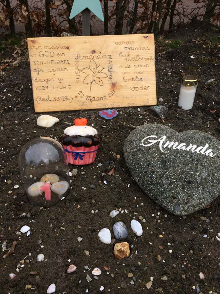 Kijk naar de lelies in het veld. Het is alsof God zelf zegt: kijk naar Amanda, hoe ik haar heb gemaakt. Zo klein, te klein om te kunnen leven hier op aarde, maar toch met zoveel zorg. Handjes voetjes, neusje, oogjes, zelfs al wat haartjes en nageltjes op haar vingertjes en teentjes.