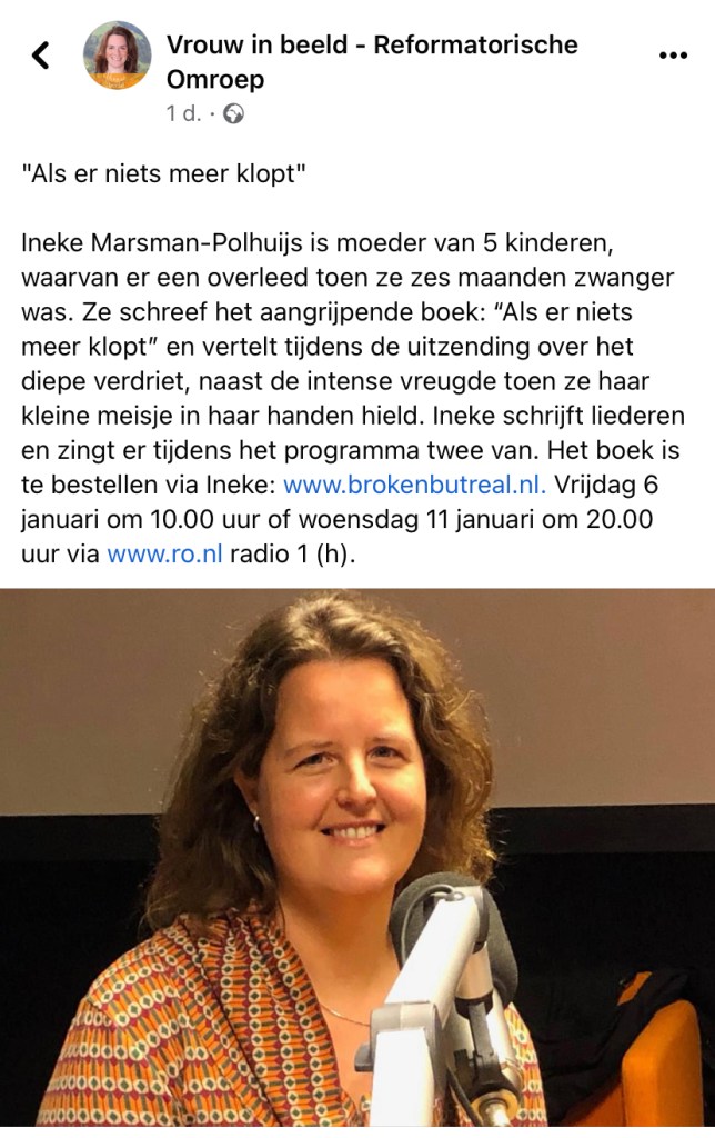 Ja. Wat als ik het er allemaal gewoon laat zijn? Dan voel ik de gebrokenheid. De gebrokenheid van mijn eigen hart, mijn leven. Dan voel ik hoe kwetsbaar ik ben en besef ik dat ik eigenlijk heel veel vragen heb. Waarom? Hoe zou ze nu zijn geweest? Hoe moet ik verder? Hoe help ik mijn kinderen? God, bent U er echt?